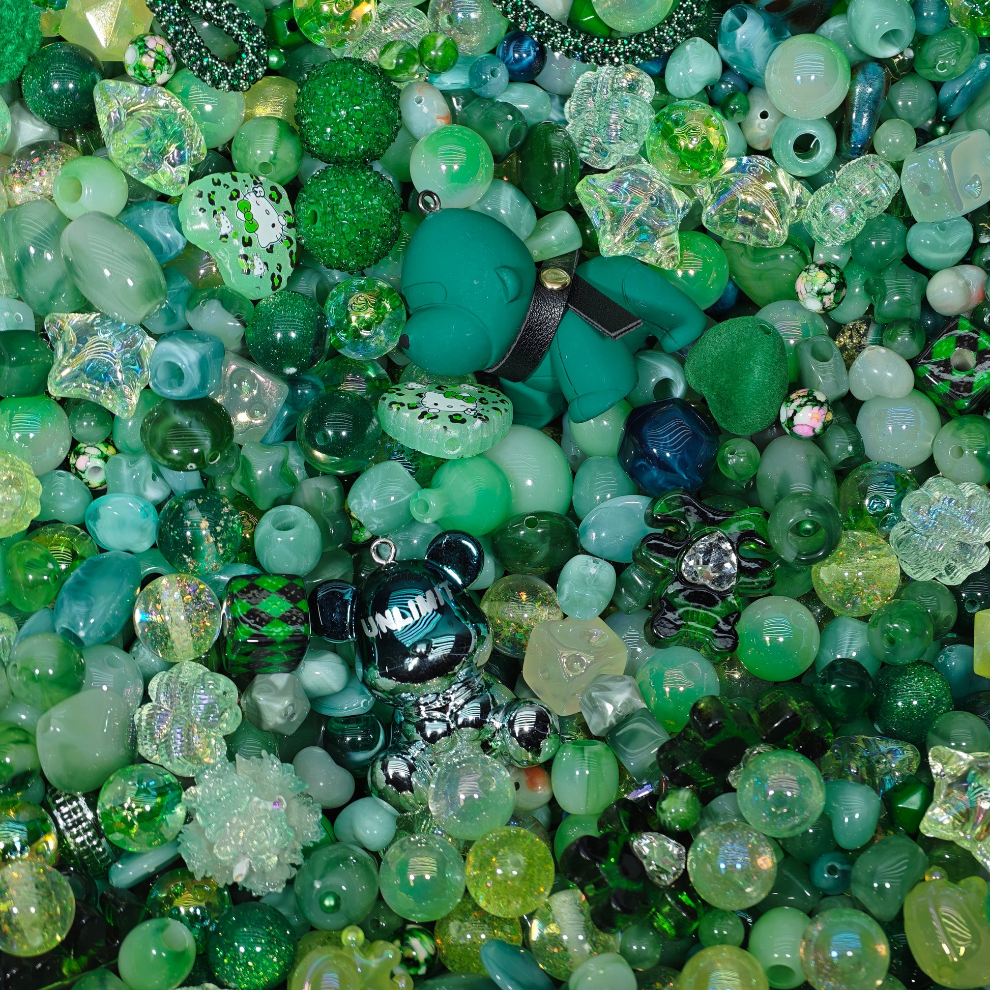 Acrylic beads- Green mix (for beadable pens, keychains, phone chains)